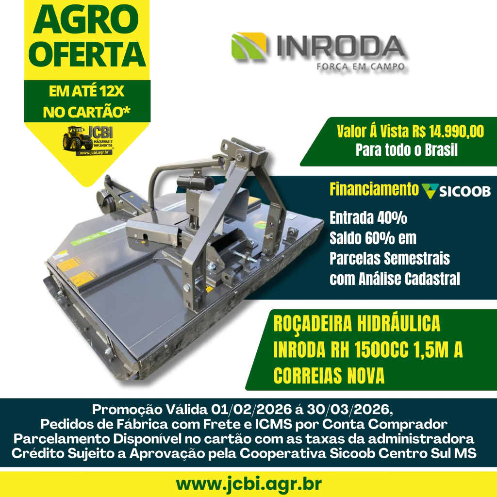 Produto NOVO, ideal para quem busca uma Roçadeira Hidráulica Inroda RH 1500CC 1,5M , pronta para oferecer alta performance e durabilidade no campo.